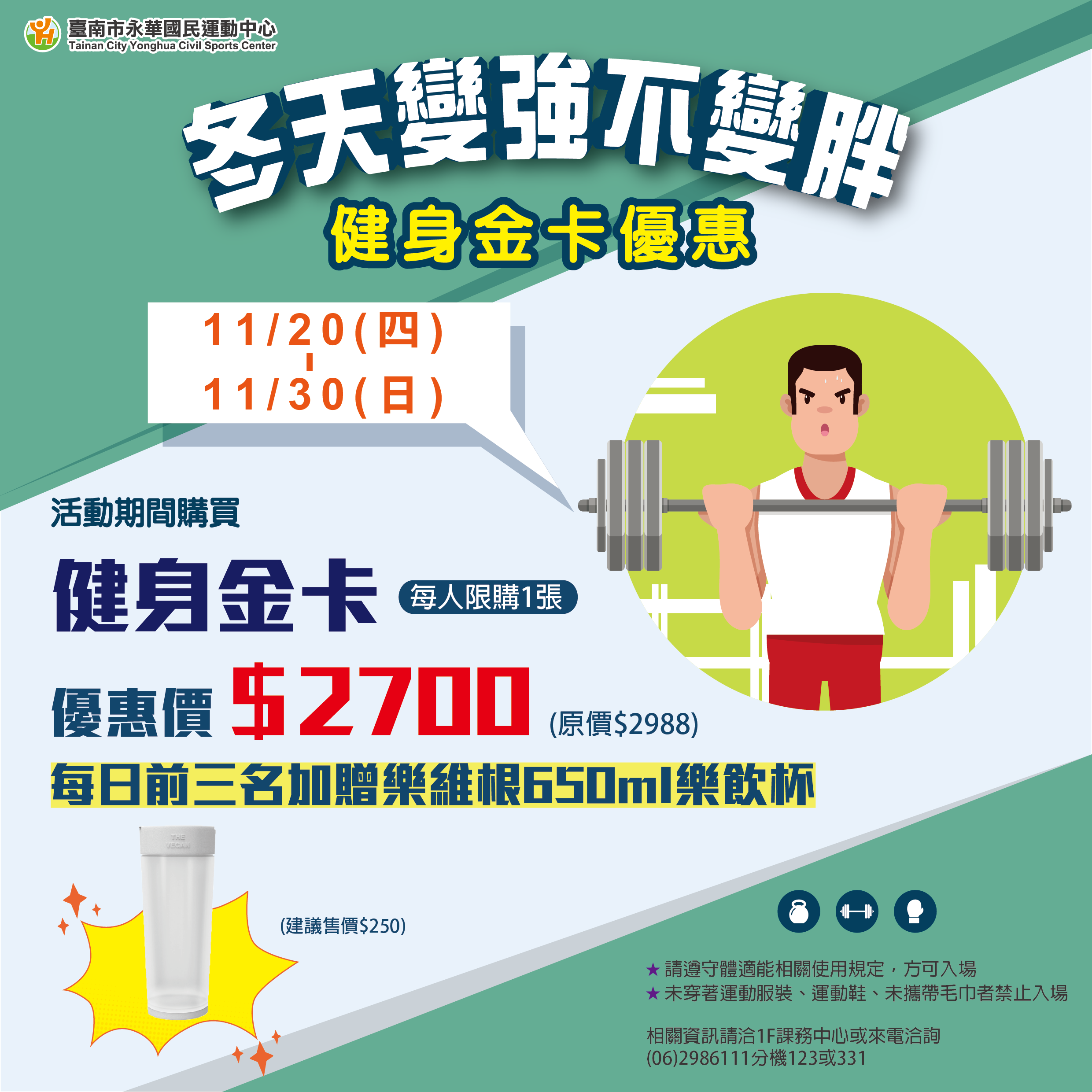 活動期間購買「健身金卡」優惠 $2,700(原價 $2,988