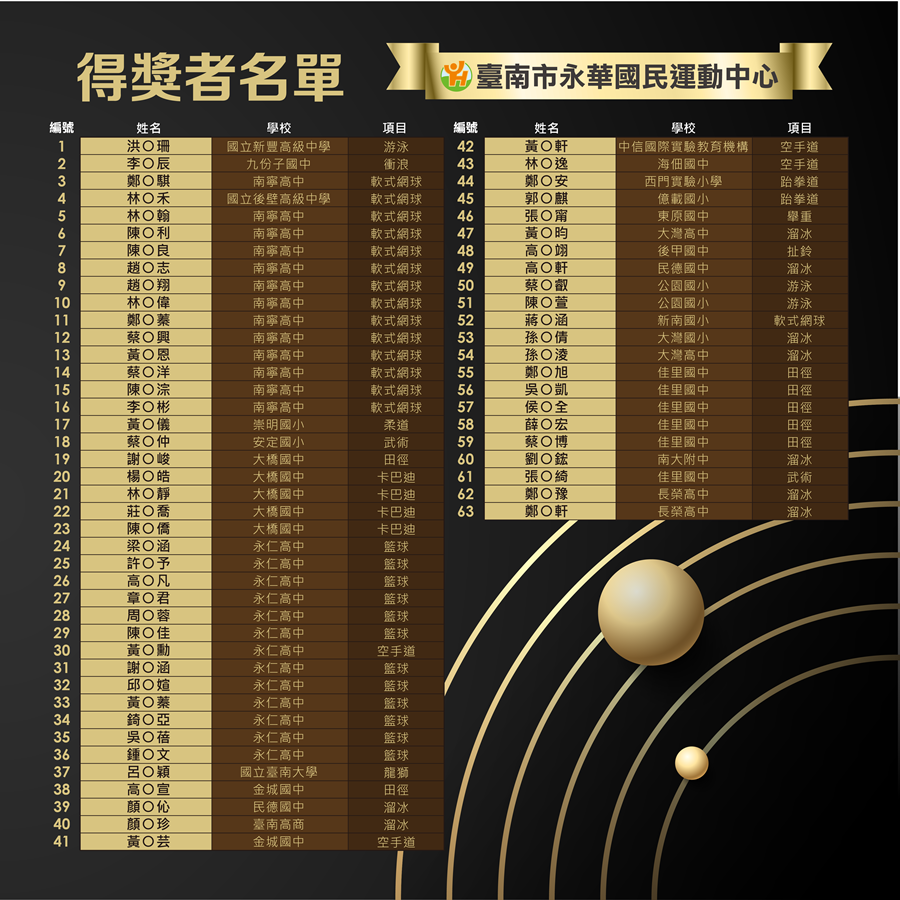 永華每年皆會舉辦的體育績優獎學金,希望藉此鼓勵所有優秀的運動人才,今年度的得獎名單正式公佈囉!