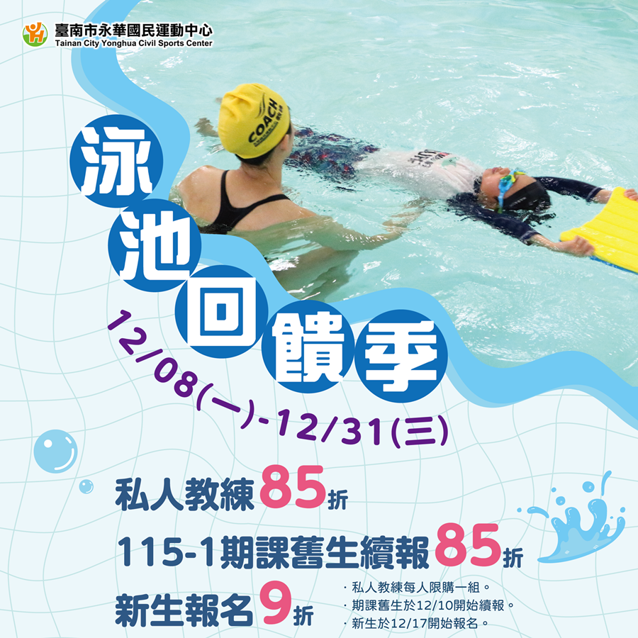 永華游泳課程廣受好評,但因應營運成本及教學品質提升,明年(2026 年)起課程費用將有所調整。