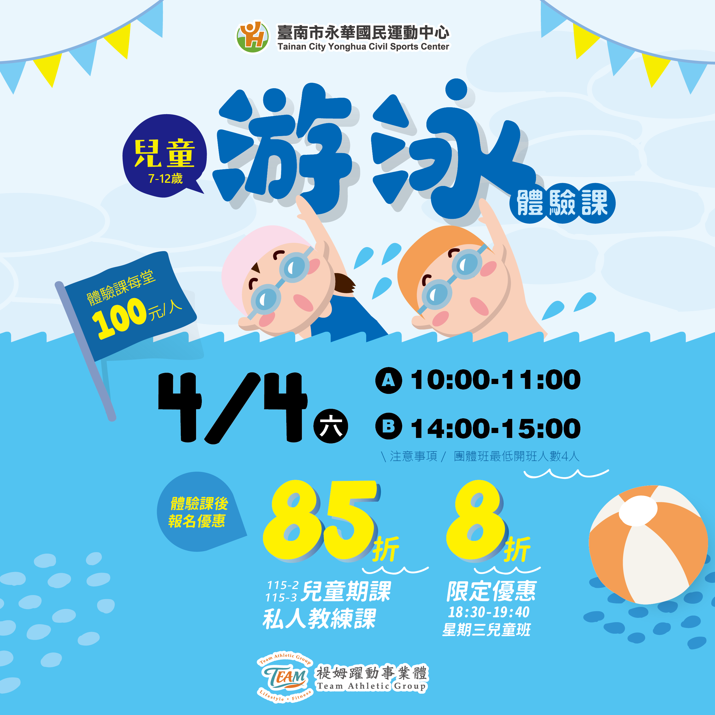 最受歡迎的游泳體驗課,額滿即截止!